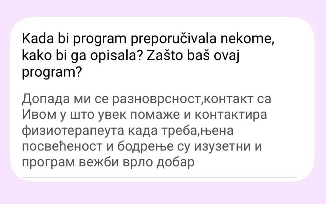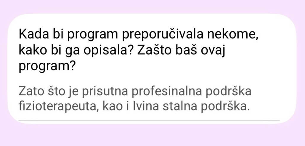 Pri ulasku na program, na video pozivu sa fizioterapeutom dobijaš tačne instrukcije: