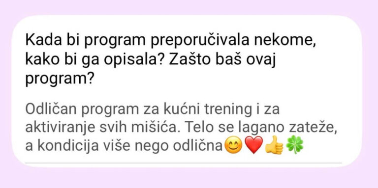 Neko iz mog tima će te kontaktirati kako bi probala prvi trening iz programa a nakon toga zakazala potpuno besplatan poziv sa mnom.